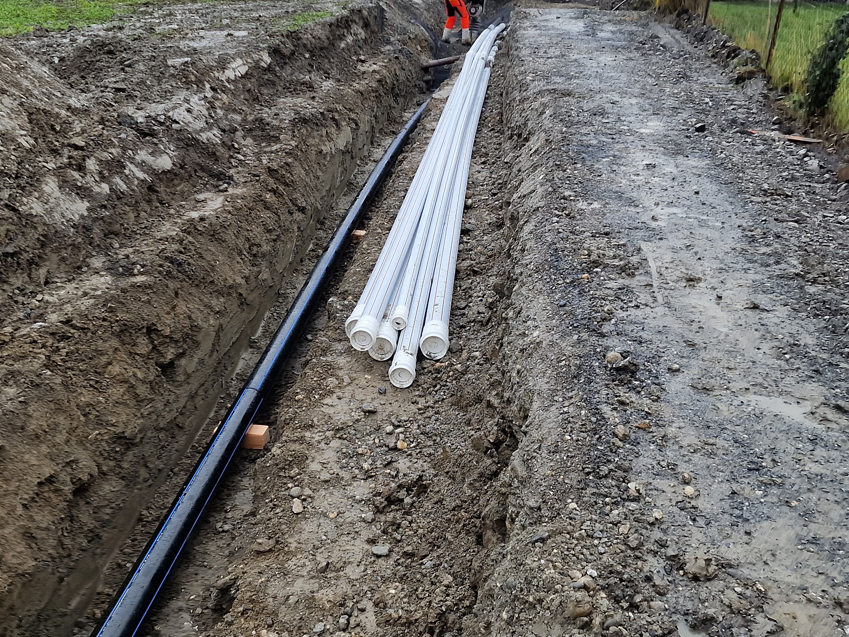 Im Auftrag der Politischen Gemeinde Wartau wurde der Vilnasweg im Ortsteil Weite umfassend saniert. Die bestehende Erschliessungsstrasse zwischen der Kantonsstrasse und dem Abzweiger Käshof wurde auf einer Länge von rund 270m erneuert und auf eine einheitliche Fahrbahnbreite von 4.70m ausgebaut. Parallel dazu wurden sämtliche Werkleitungen – Wasser, Abwasser, Strom, Gas und Kommunikation – modernisiert und neu geordnet. Das Projekt verbindet verkehrstechnische Verbesserungen mit einer zukunftsgerichteten Infrastrukturplanung.