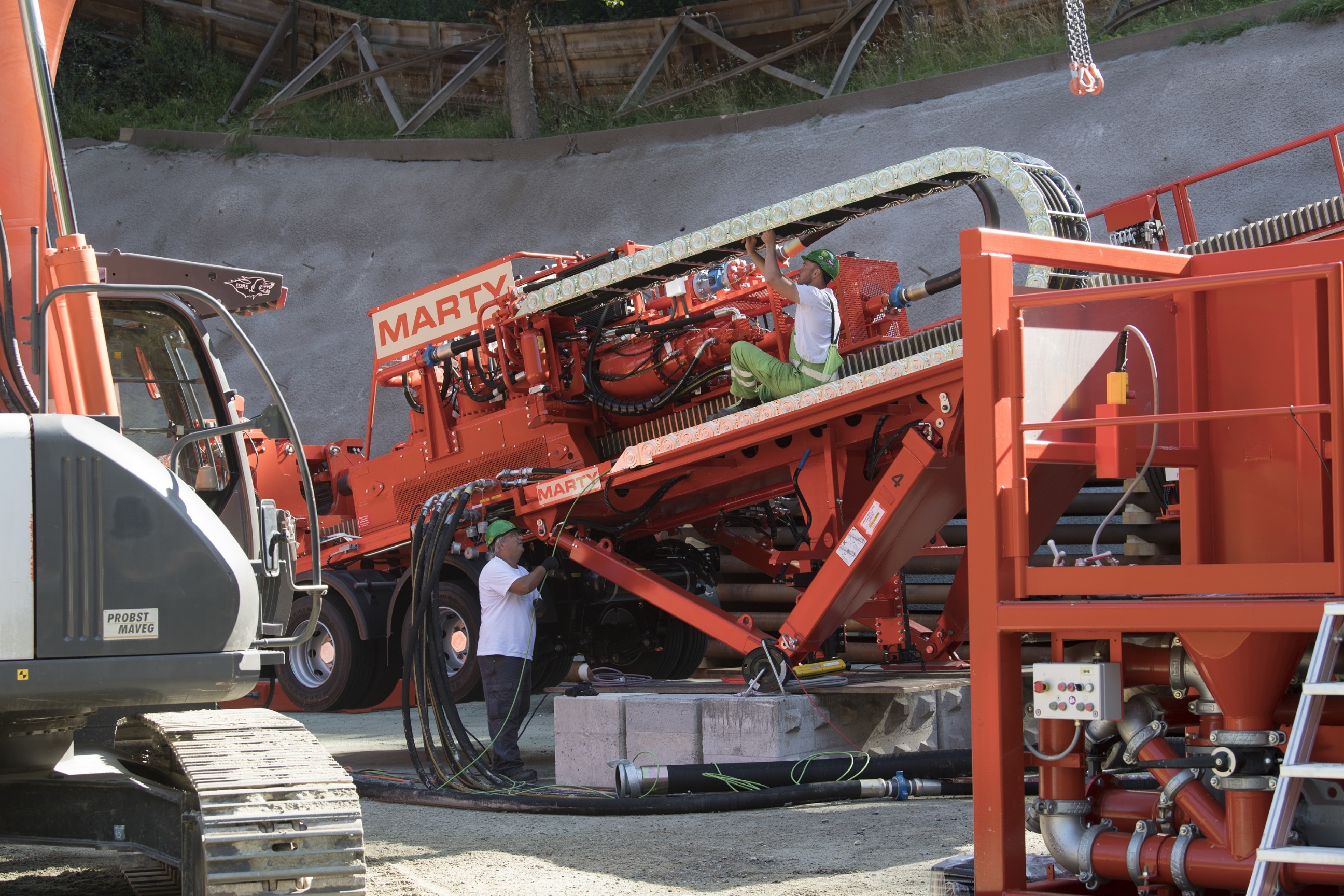 «Hintergrund für die ARGE war neben der für einen solchen Auftrag notwendigen Expertise die Forderung in der Ausschreibung, dass zwei Bohrmaschinen in der erforderlichen Grösse vorhanden sein müssen, falls eine ausfallen sollte. Eine weitere Bedingung war der elektrische Betrieb der Anlagen. Letztlich konnten dies nur wir und die Schenk AG Heldswil zusammen als Konsortium anbieten», erinnert sich Erik Weirather als zuständiger MARTY-Projektleiter.