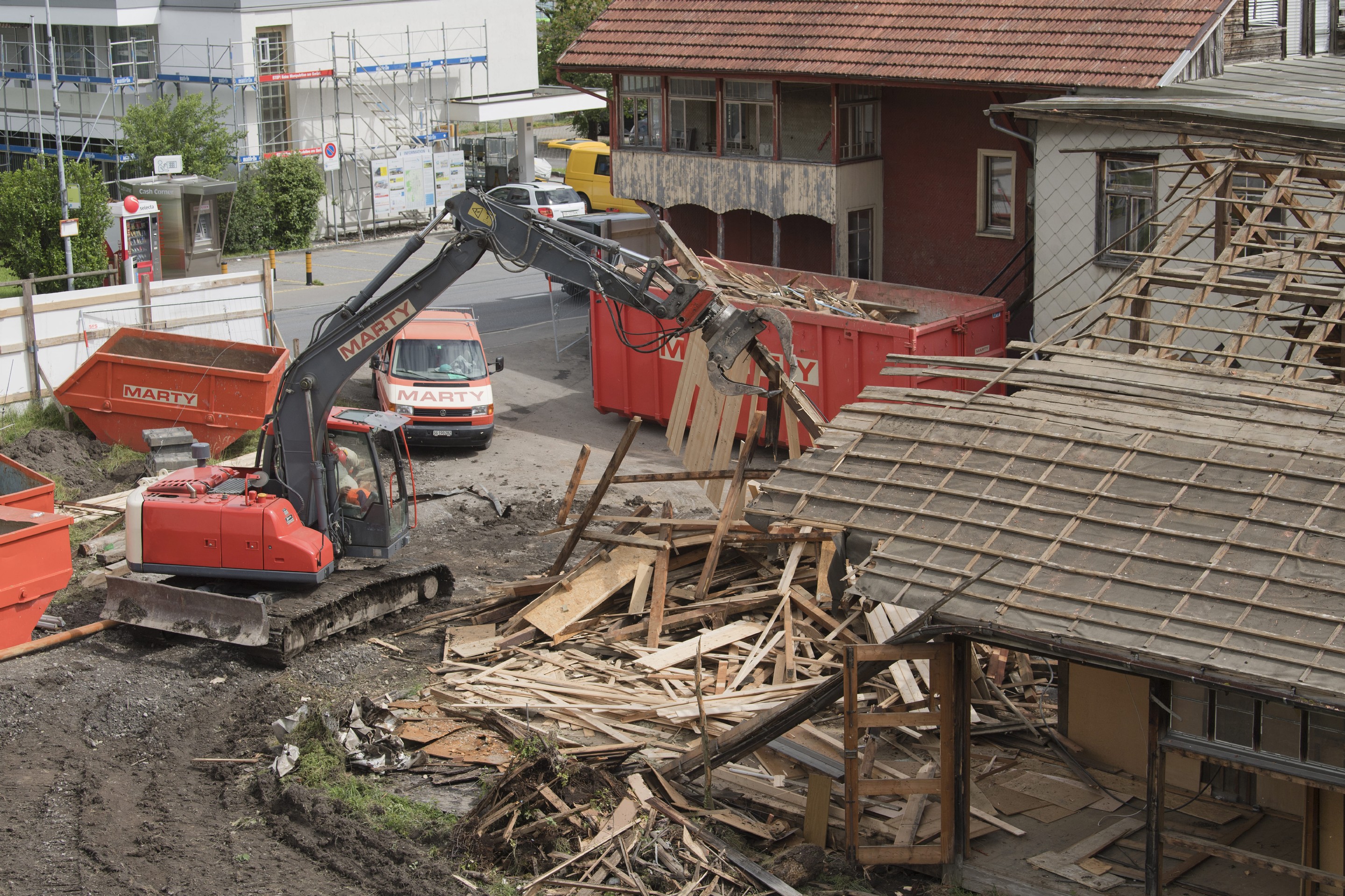 Das Mehrfamilienhaus mit angeschlossener Schreinerei und Nebengebäuden an zentraler Lage in Sevelen wurde vollständig zurückgebaut. Aufgrund des Baujahres wurden vorgängig umfangreiche Schadstoffuntersuchungen durchgeführt. Dabei wurden verschiedene asbesthaltige Materialien festgestellt, die gemäss EKAS-Richtlinie 6503 durch zertifizierte Fachfirmen unter strengen Schutzvorkehrungen entfernt und entsorgt wurden.