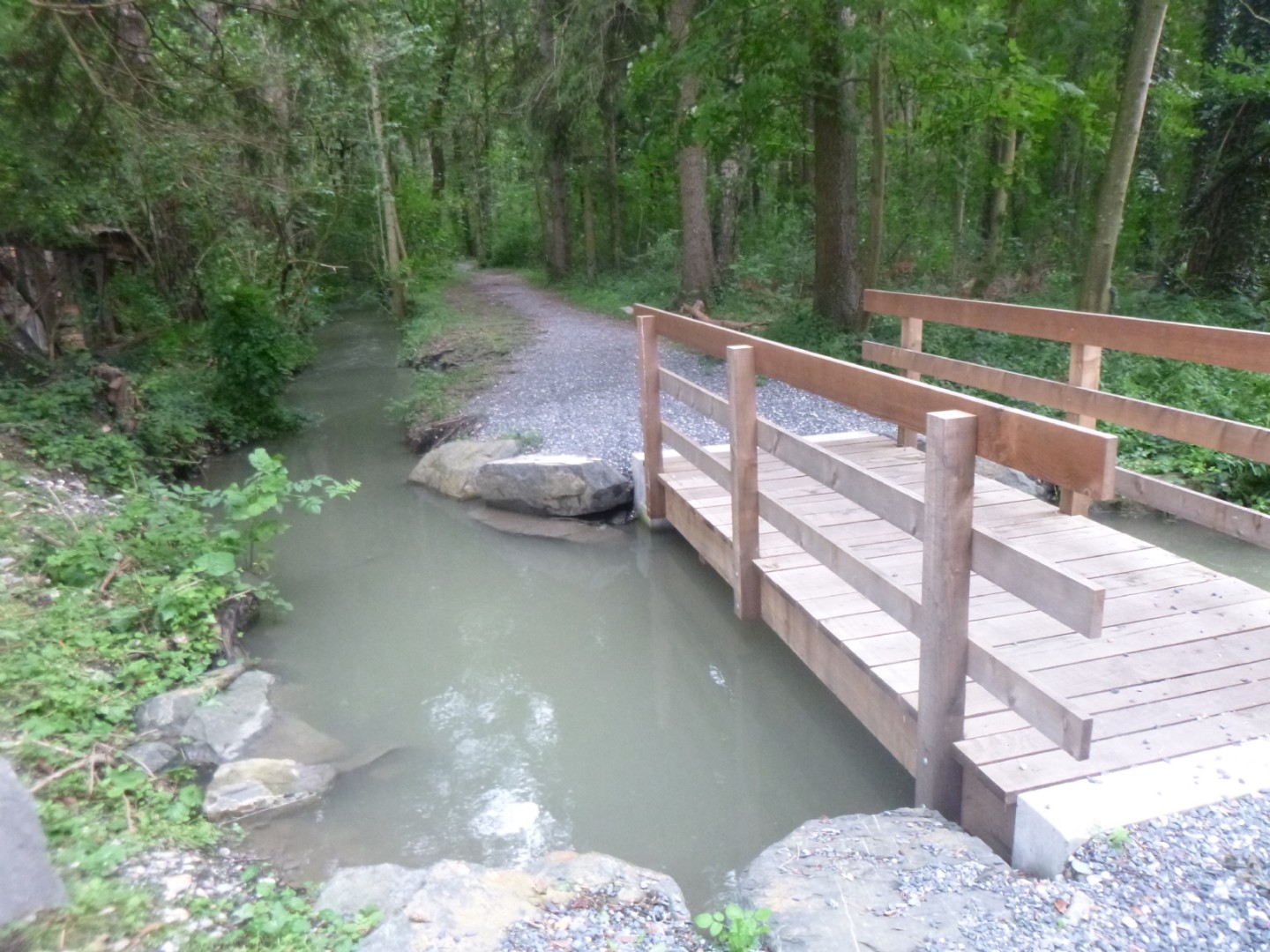 Renaturierung der Gewässerläufe Höwiesen mit Beipass Mülbach, Fischaufstieg, Aufwertung Fussgängersteg Vitaparcours und Erstellung von Flachufern.