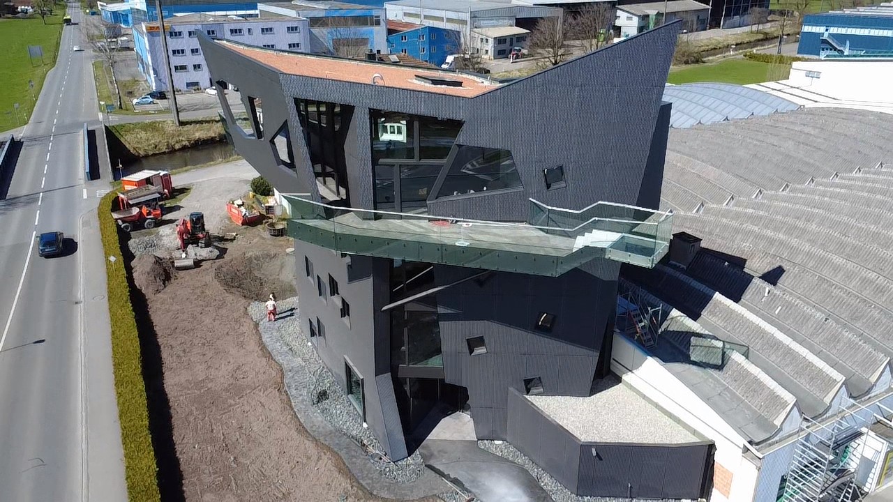 Für die Wolfstoren AG in Sennwald, direkt an der Autobahn, durften wir ein neues Bürogebäude realisieren. Der Massivbau besteht vollständig aus Beton und überzeugt durch seine außergewöhnliche Form. Mit seiner markanten Architektur ist das Bauwerk ein einzigartiger Blickfang in der Region.