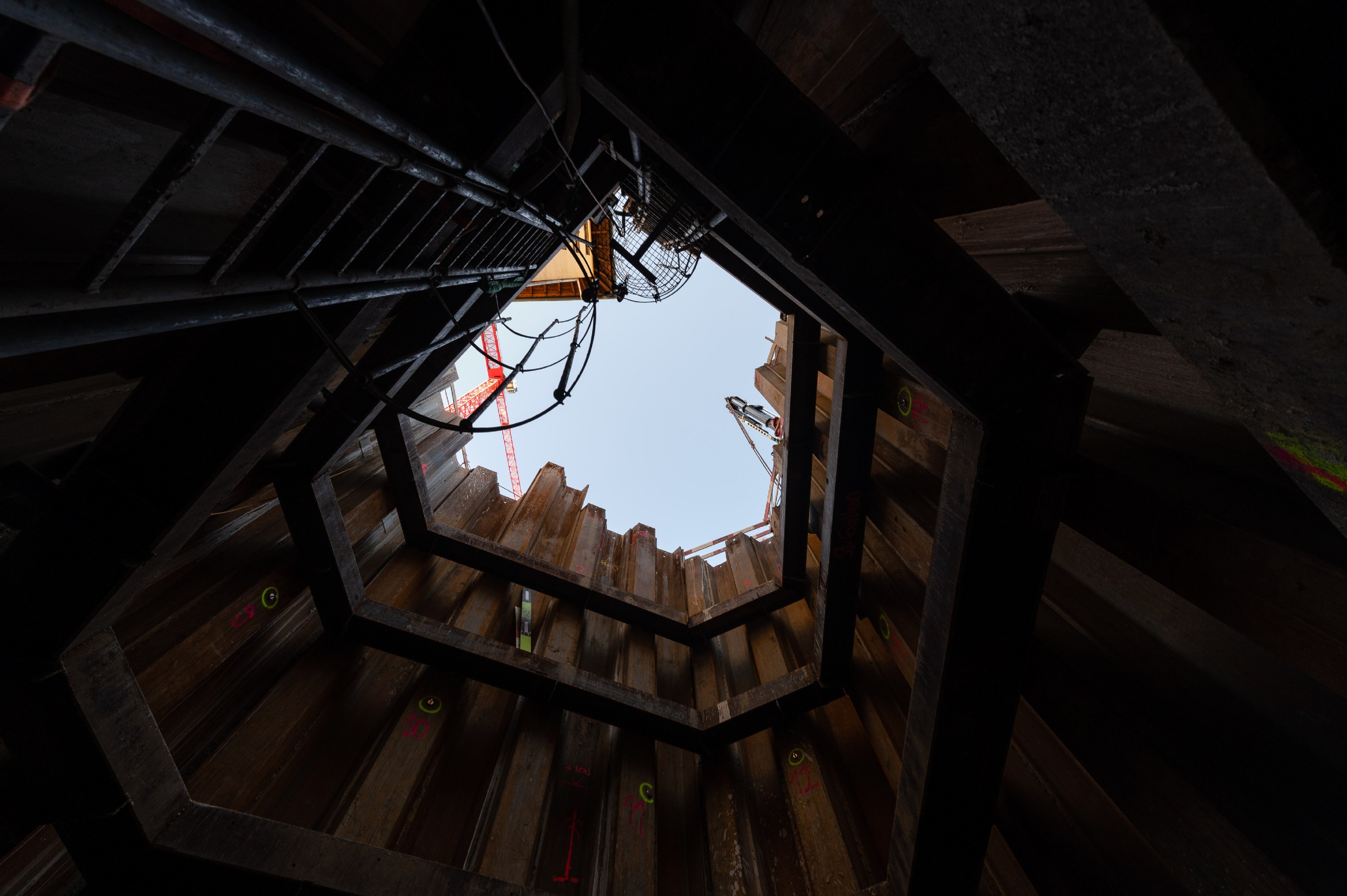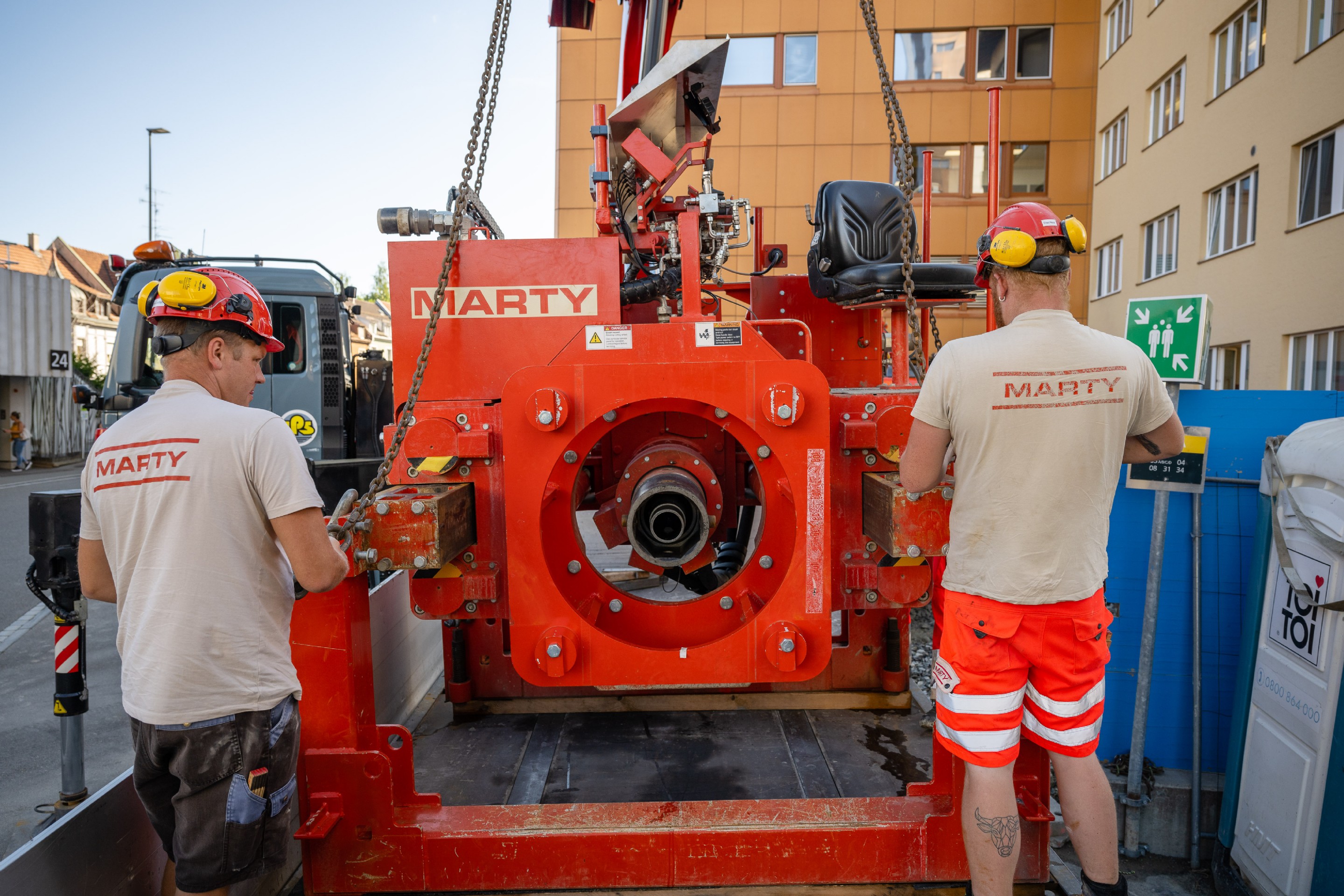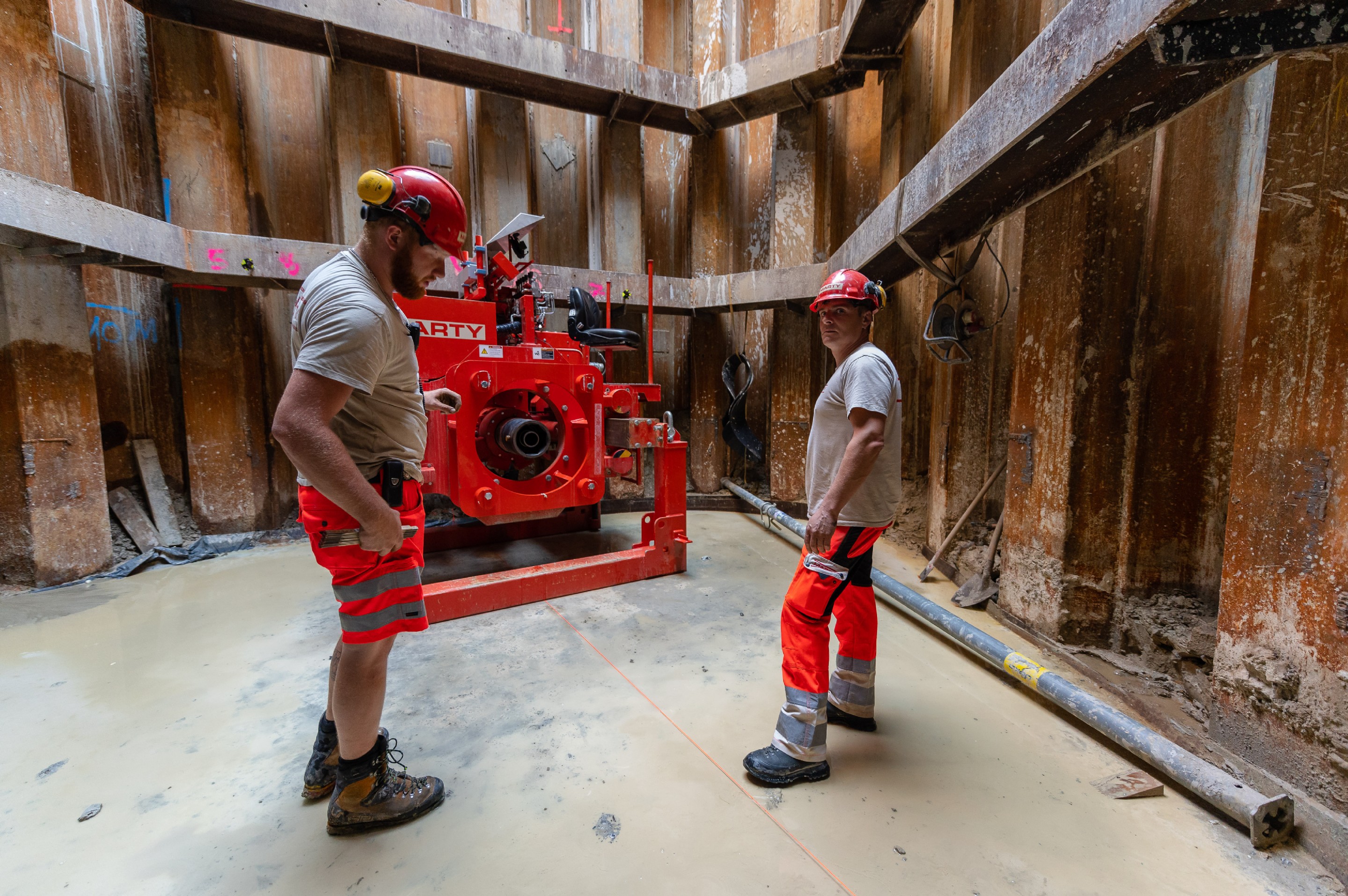 Tiefe der Startgrube von 11m; Bohrung im Grundwasser; Bohrung von bis Betonwand an Gebäude, anschliessend exaktes Anzeichnen der Lage und Erstellen der Kernbohrung vom Gebäude aus; Altlasten im Boden; sandig / lehmig / wässrige Geologie.