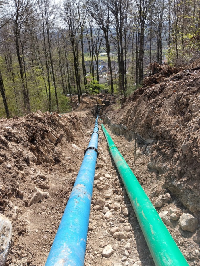 Im Rahmen des Ersatzneubaus des Reservoirs Buechhoger in Uitikon wurden sämtliche Zulauf-, Ablauf- und Verteilleitungen neu verlegt. Die Arbeiten umfassten den fachgerechten Einbau der Wasserleitungen im steilen Gelände, den Anschluss an bestehende Versorgungsleitungen sowie die Schaffung einer zweiten Ableitung zur Erhöhung der Versorgungssicherheit. Die Arbeiten wurden im Umfeld einer laufenden Wasserversorgungsanlage unter höchsten Sicherheits- und Qualitätsanforderungen ausgeführt.