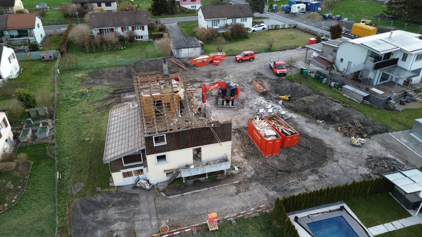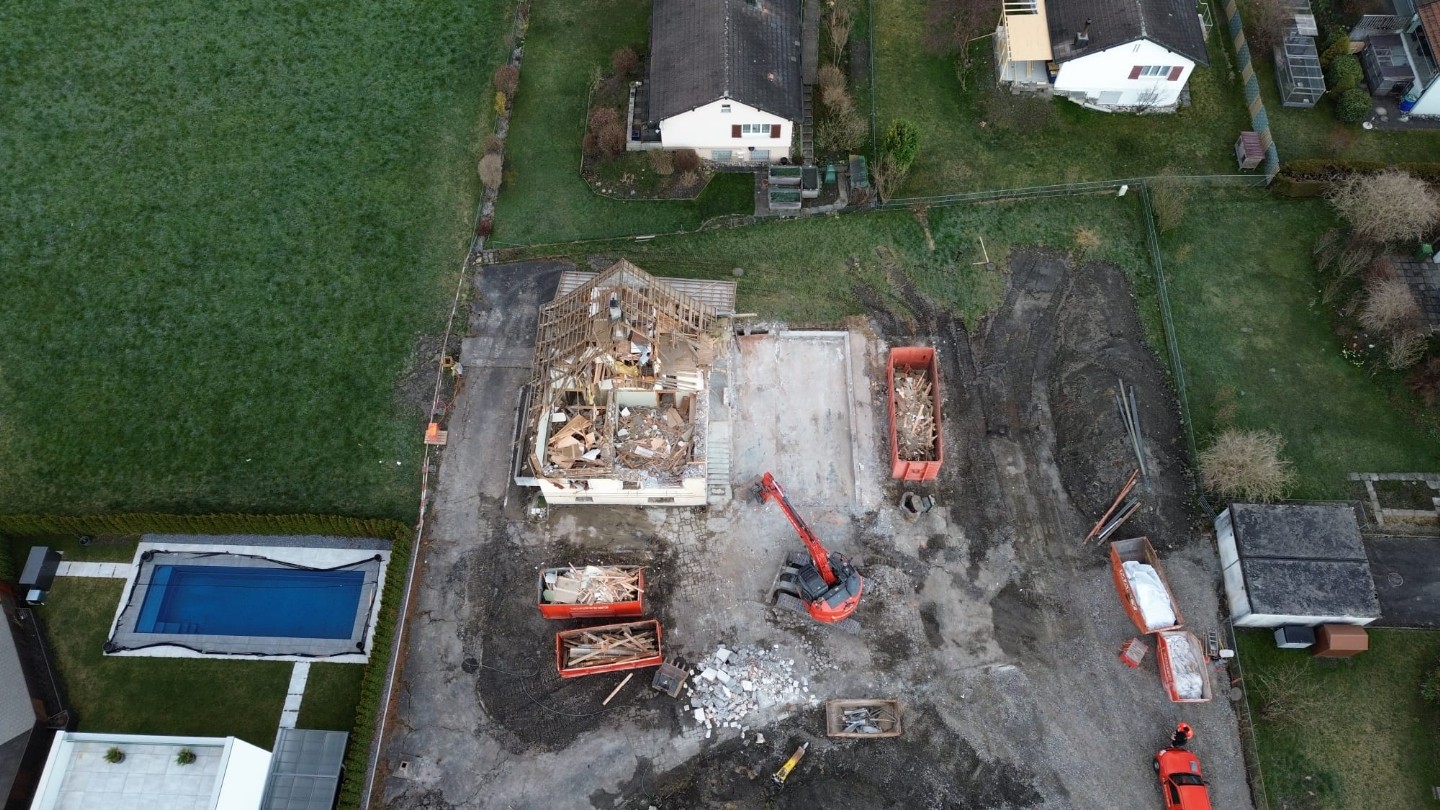 Im Auftrag einer privaten Bauherrschaft führten wir den vollständigen Rückbau mehrerer Gebäude an der Nordstrasse 1 in Haag aus. Die Rückbauarbeiten umfassten ein Wohnhaus (Geb. Nr. 693), eine Garage mit Stall (Nr. 694), ein Schopf (Nr. 2685), ein Gartenhaus (Nr. 2686) sowie ein Containeranbau. Zusätzlich wurden sämtliche Belagsflächen, Verbundsteine sowie bestehende Grundmauern und Gartenplatten entfernt und die Parzelle gerodet und sauber geräumt.