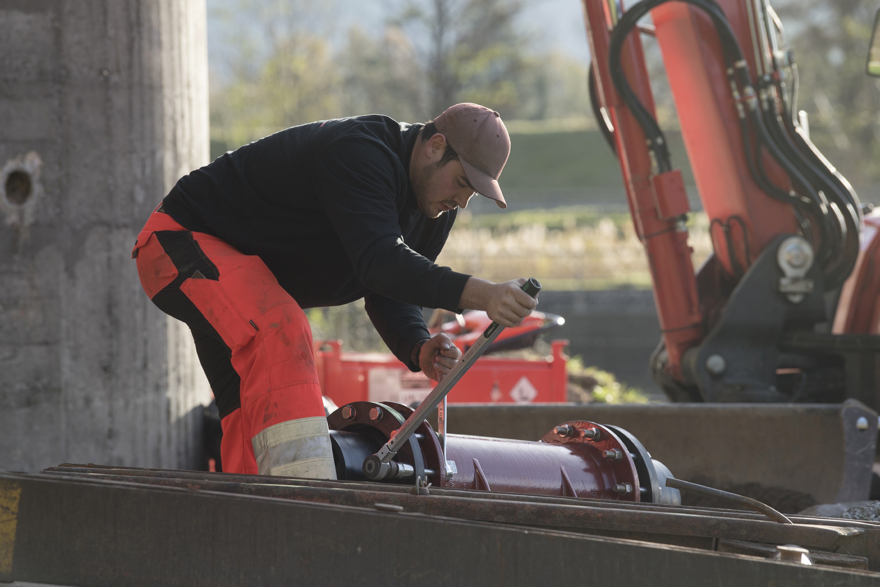 Verlegung der Druckleitung (Ø 250mm) über ca. 2x 4km Länge an stark befahrenen Strassen sowie in unmittelbarer Nähe zur Bahnlinie. Verlegung von ca. 21km Kabelschutzrohren zur Aufnahme von Steuer-, Kommunikations- und Monitoringleitungen. Klassifizierung des Aushubs nach Bodenklassen (A, B, C) und sorgsamer Entsorgung bzw. Wiederverwertung des Materials. Tiefbau-, Graben- und Rohrleitungsarbeiten unter laufendem Verkehr inkl. Verkehrsführung und Baustelleneinrichtung in beengten Ortslagen. Einzug von Druckrohren (Ø 110mm & 315mm) über eine Länge von ca. 2x 4km.
